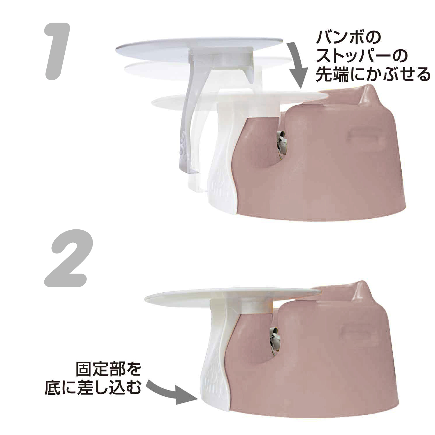- トレイをベビーソファにかぶせて固定部を底に差し込みます。